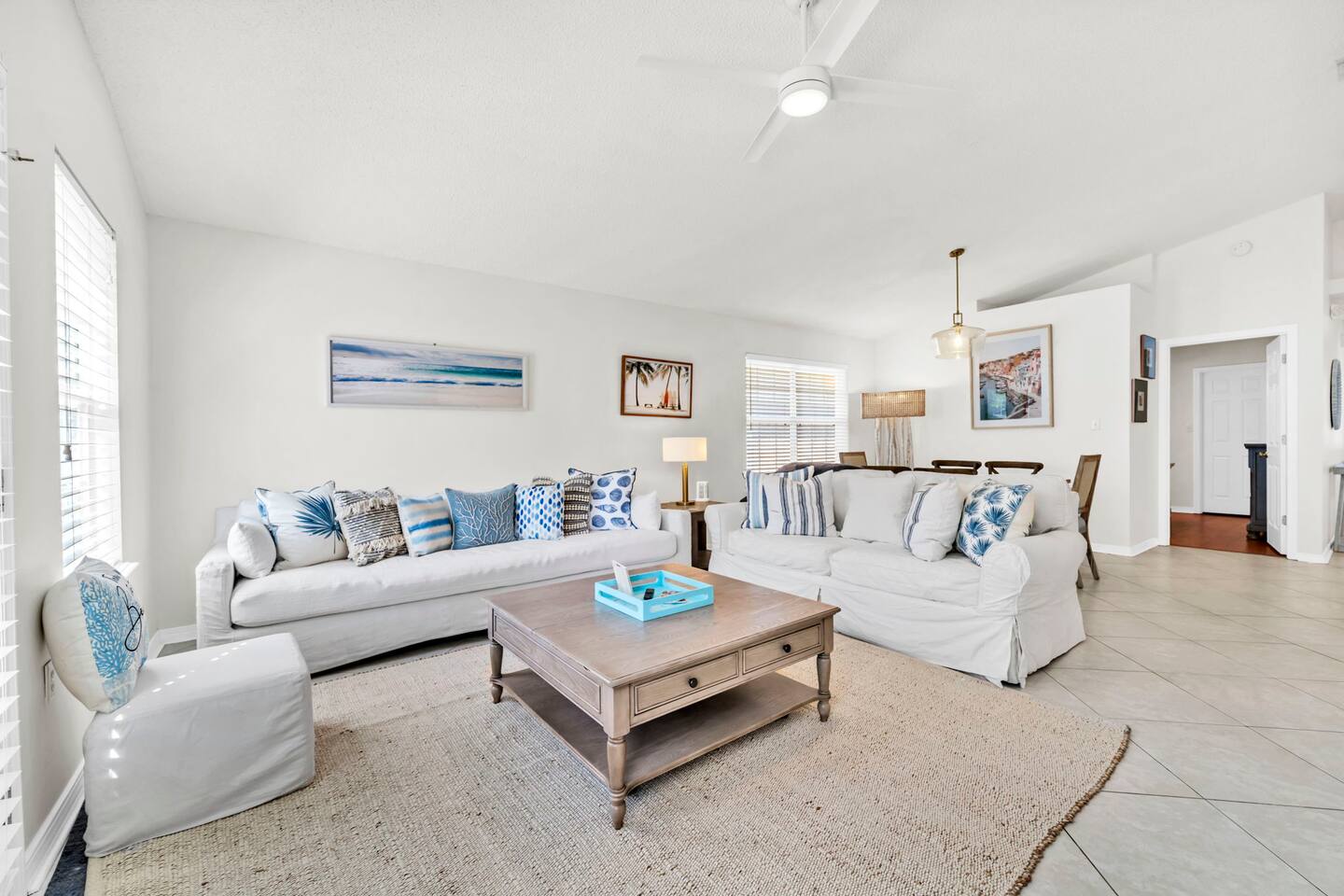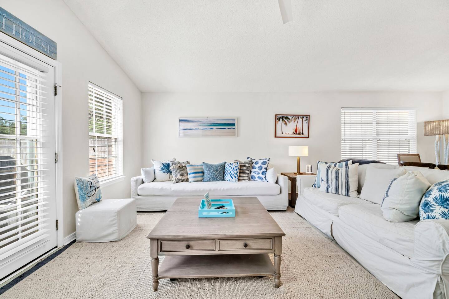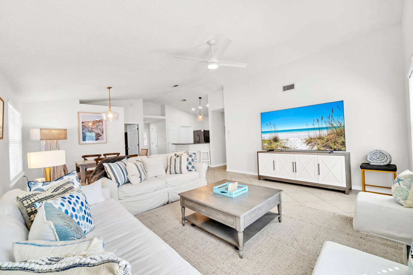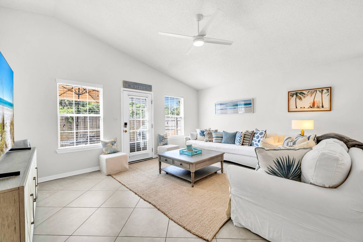 Escape to this spacious, family-friendly home in the sought-after Seaspray community, where relaxation meets convenience. Just across the street from the stunning white-sand beaches of the Emerald Coast, this beautiful single-family residence offers private beach access for the ultimate coastal experience. Enjoy resort-style amenities, including a community pool perfect for lounging or a quick dip after a day at the beach. With ample parking for both cars and golf carts, you'll have easy access to everything this charming neighborhood has to offer. The home's prime location puts you across the street from the Surf Hut Restaurant a local favorite for delicious seafood and coastal dining. Plus, you're just minutes away from shopping, dining, and entertainment, ensuring you're never far from what you need. Whether you're planning a family vacation or seeking the perfect spot for a long-term stay, this is your ideal getaway. Create unforgettable memories in this coastal oasis! The home is beautifully decorated with coastal furnishings with 4 bedrooms and 2 bathrooms that can comfortably accommodate 10 guests. Sleeping arrangements include a master suite with a King bed and en-suite bathroom, a bedroom with a Queen bed, a bedroom with two Full beds, and a room with two Twin beds. The living room is equipped with a 85-inch smart TV for a family movie night. The fun doesn't stop there!! You'll love being steps away from the semi-secluded, secure community pool. It's often vacant, so it can feel like having your own private pool & cabana area! You'll also want to relax in the home's private backyard oasis with a covered pergola, enchanting porch swing, 2 dining tables, a BBQ grill, cornhole set, and twinkling lights to enjoy at dusk. With access to the garage, you'll have room for one vehicle, plus 2 additional parking spaces in the driveway. (Only 3 vehicles are allowed at this property, and parking or blocking the sidewalk is not allowed. Please follow these rules to avoid a fine.) Golf carts are welcome if you plan to rent one while visiting. No renters under the age of 25 are allowed, and due to extreme allergies for the owner no pets are allowed on the premises.