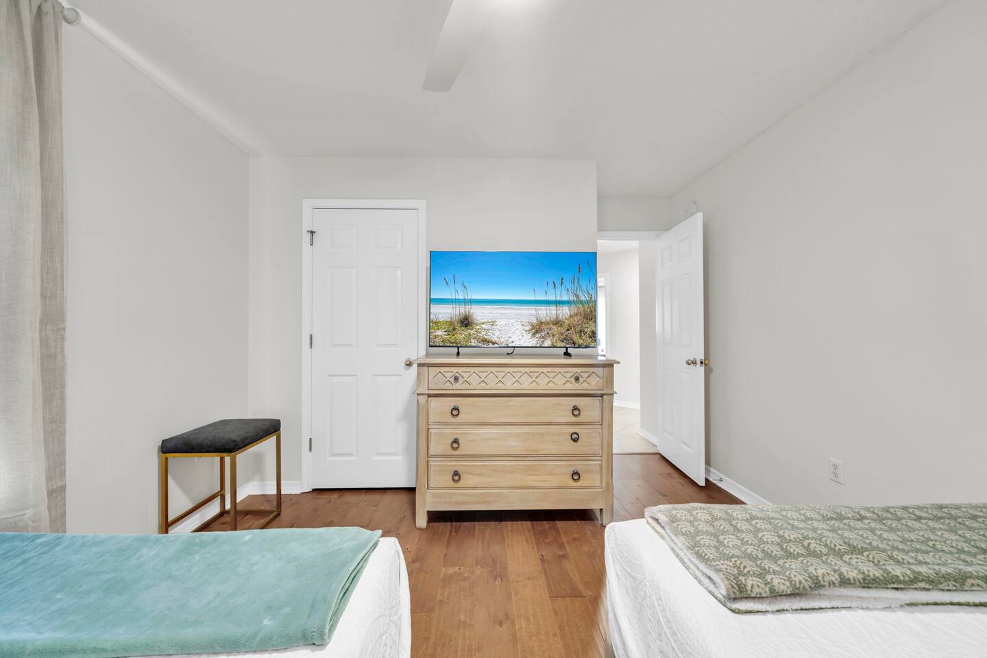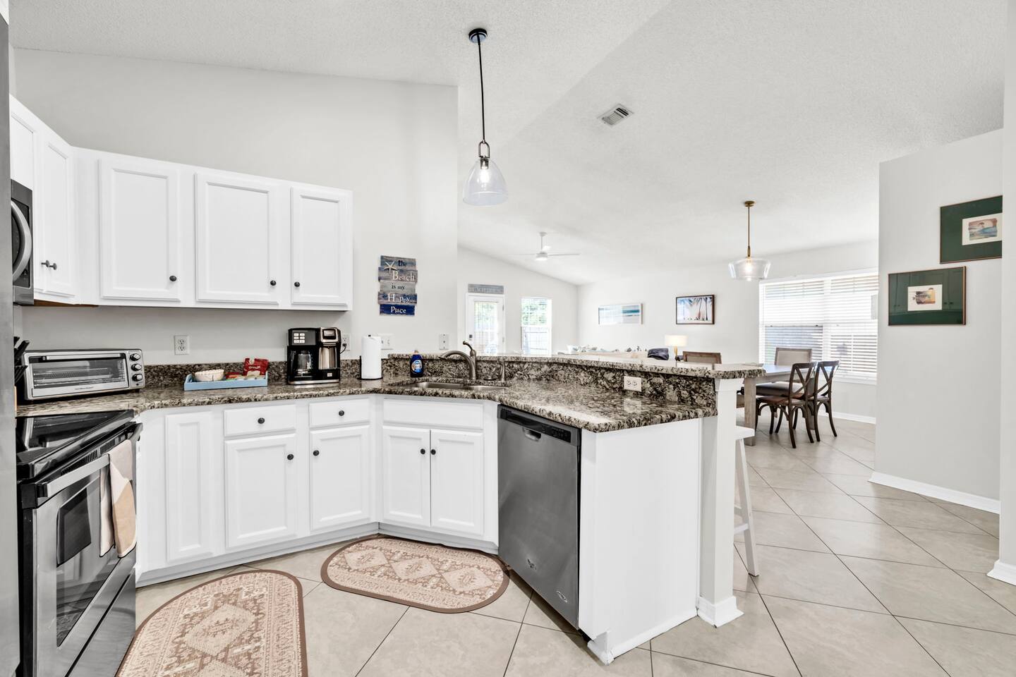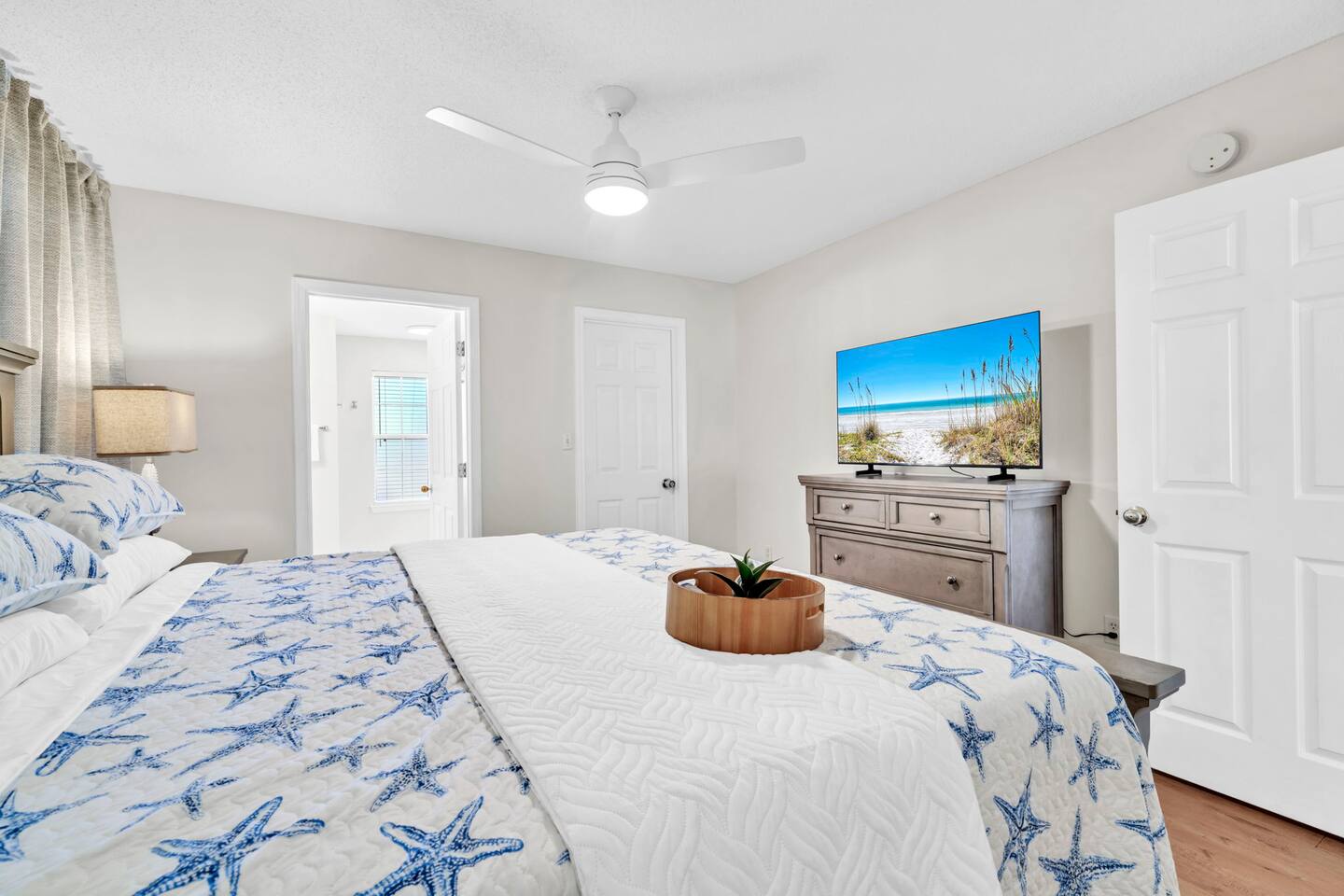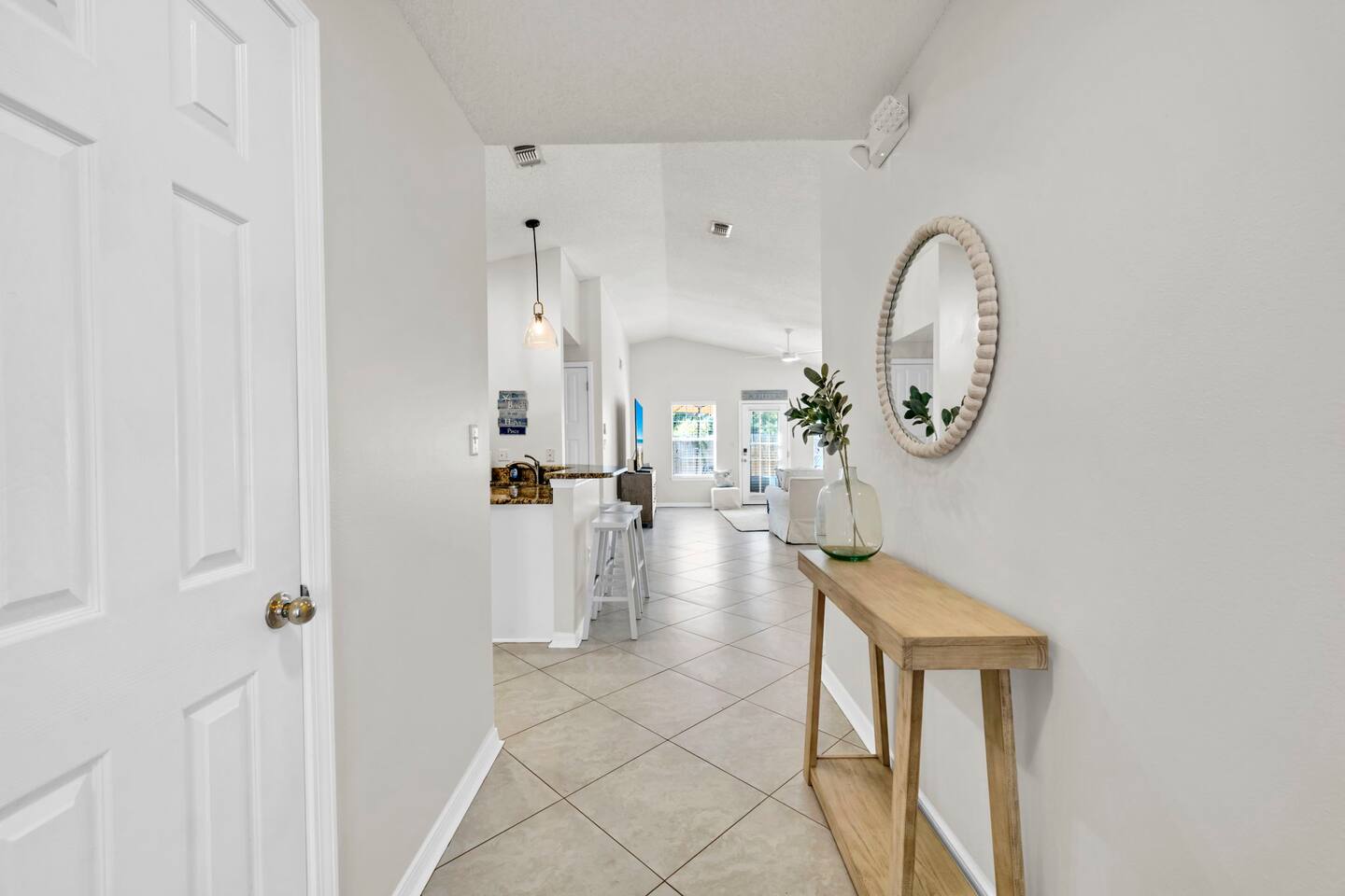 Escape to this spacious, family-friendly home in the sought-after Seaspray community, where relaxation meets convenience. Just across the street from the stunning white-sand beaches of the Emerald Coast, this beautiful single-family residence offers private beach access for the ultimate coastal experience. Enjoy resort-style amenities, including a community pool perfect for lounging or a quick dip after a day at the beach. With ample parking for both cars and golf carts, you'll have easy access to everything this charming neighborhood has to offer. The home's prime location puts you across the street from the Surf Hut Restaurant a local favorite for delicious seafood and coastal dining. Plus, you're just minutes away from shopping, dining, and entertainment, ensuring you're never far from what you need. Whether you're planning a family vacation or seeking the perfect spot for a long-term stay, this is your ideal getaway. Create unforgettable memories in this coastal oasis! The home is beautifully decorated with coastal furnishings with 4 bedrooms and 2 bathrooms that can comfortably accommodate 10 guests. Sleeping arrangements include a master suite with a King bed and en-suite bathroom, a bedroom with a Queen bed, a bedroom with two Full beds, and a room with two Twin beds. The living room is equipped with a 85-inch smart TV for a family movie night. The fun doesn't stop there!! You'll love being steps away from the semi-secluded, secure community pool. It's often vacant, so it can feel like having your own private pool & cabana area! You'll also want to relax in the home's private backyard oasis with a covered pergola, enchanting porch swing, 2 dining tables, a BBQ grill, cornhole set, and twinkling lights to enjoy at dusk. With access to the garage, you'll have room for one vehicle, plus 2 additional parking spaces in the driveway. (Only 3 vehicles are allowed at this property, and parking or blocking the sidewalk is not allowed. Please follow these rules to avoid a fine.) Golf carts are welcome if you plan to rent one while visiting. No renters under the age of 25 are allowed, and due to extreme allergies for the owner no pets are allowed on the premises.
