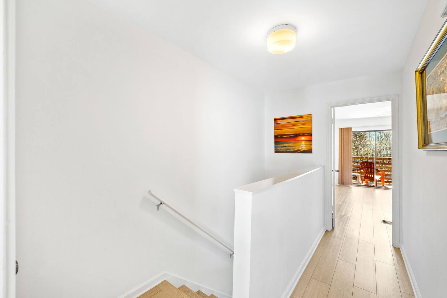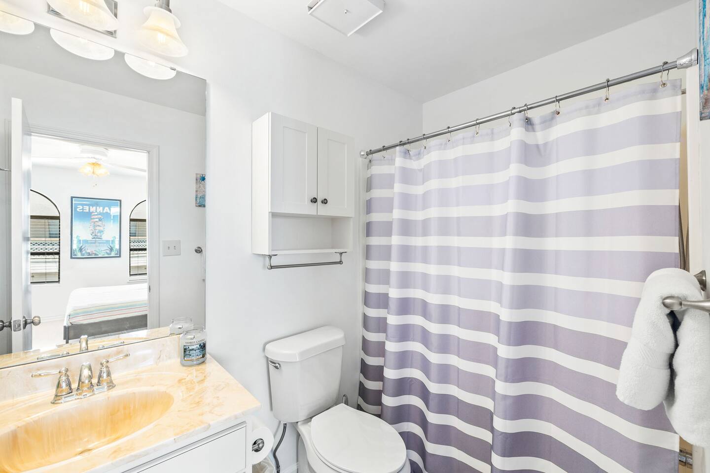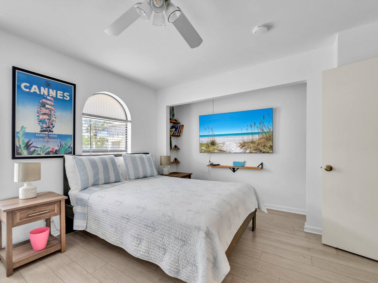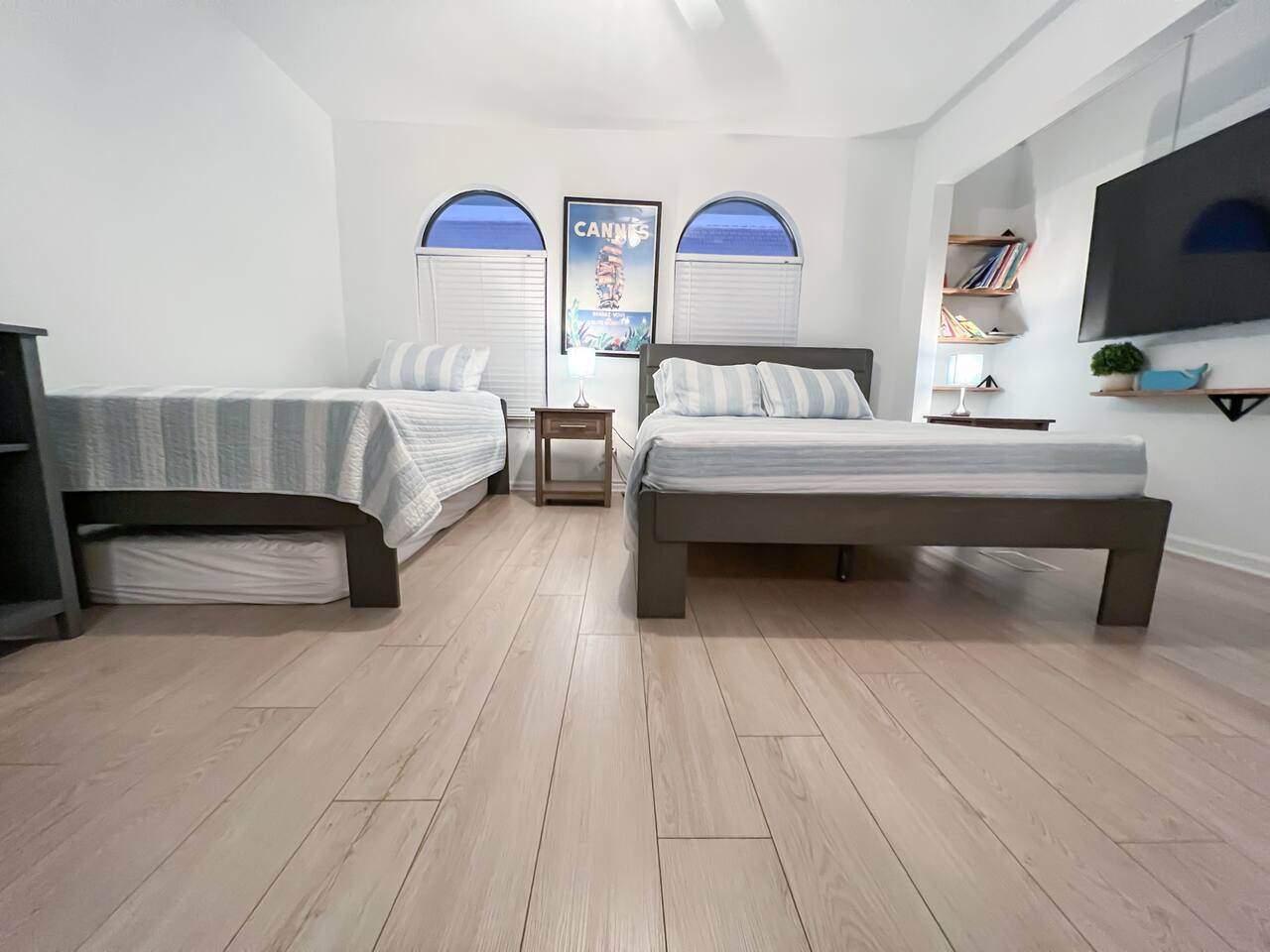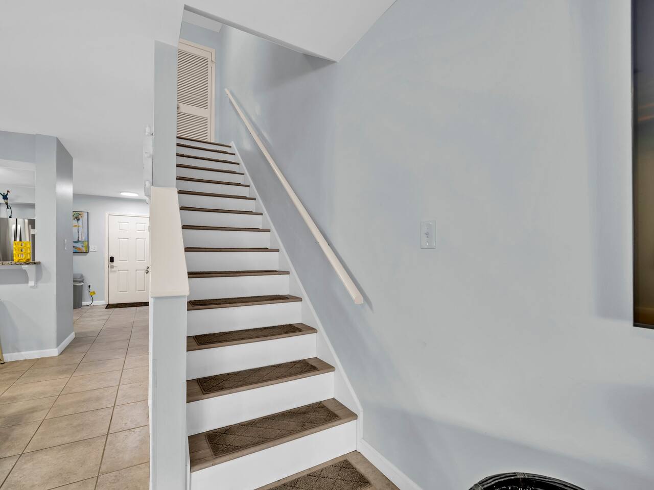 This spacious townhouse features two bedrooms and two and a half bathrooms, comfortably accommodating up to six guests. Upon entering, you’ll find an open-concept kitchen, dining, and living area with plenty of space for everyone to gather. Relax on the sofa and enjoy a movie on the flat-screen TV, or gather around the dining table for family meals or card games. The beautifully appointed kitchen is fully equipped for everything from quick snacks to hearty home-cooked meals. Just off the living room, a private fenced-in patio offers a perfect spot to enjoy the outdoors. Upstairs, both bedrooms include en suite bathrooms and flat-screen TVs for added comfort and privacy. A convenient stackable washer and dryer makes quick cleanups easy. Two parking spaces are located directly in front of the townhouse, allowing you to pull right up, unload your luggage, and stroll to the beach.