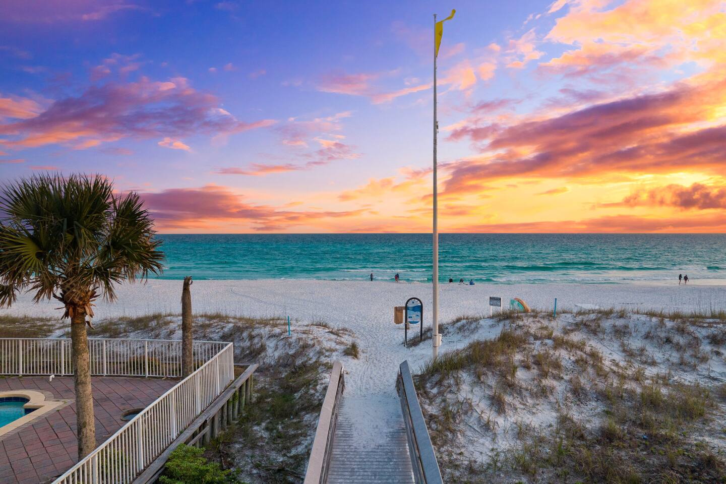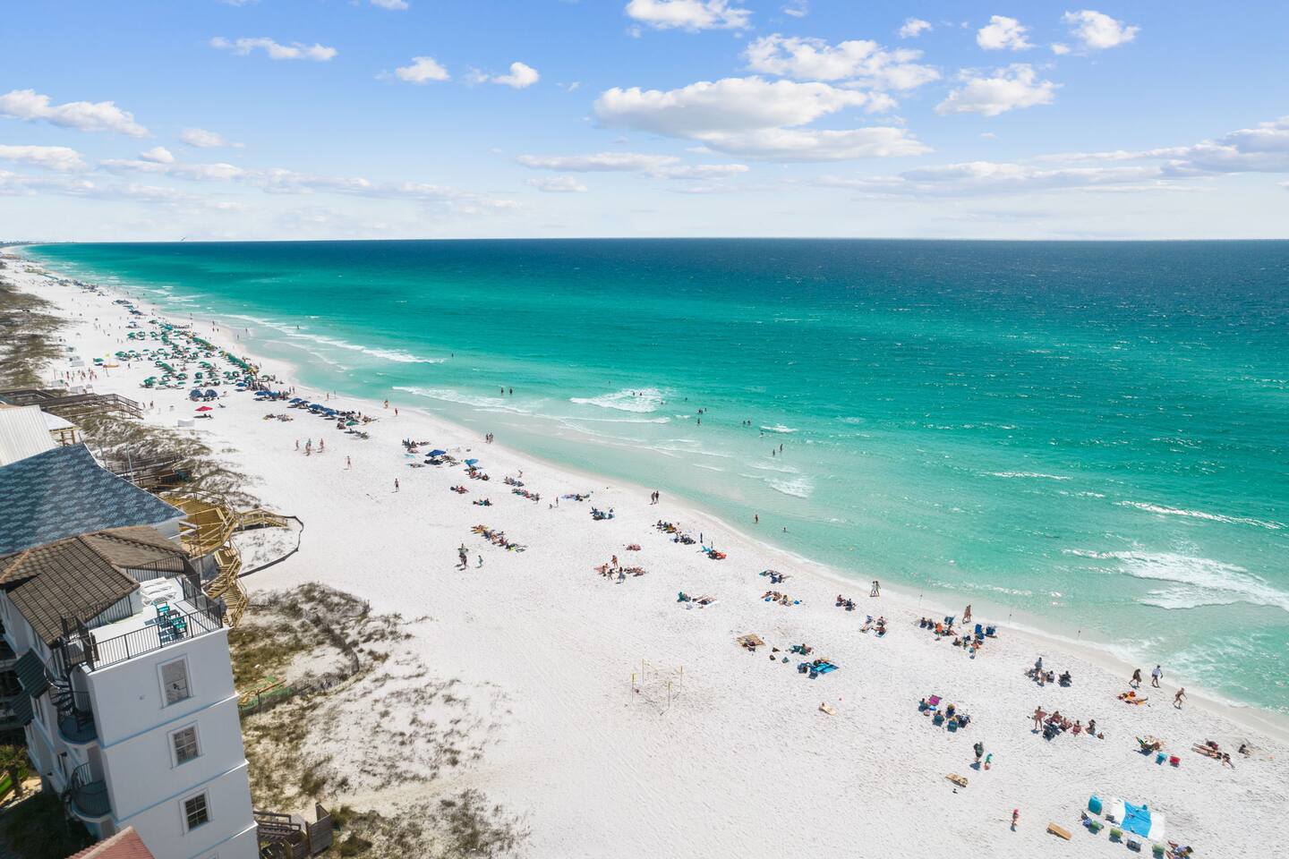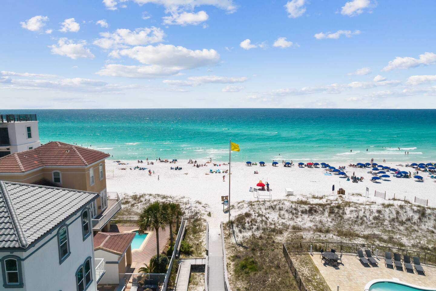 Beach chair and umbrella service is available upon request. You can contact the beach service directly at Emerald Coast Beach Service. A beach cart with chairs and an umbrella is available for guests at no charge. The primary renter must be at least 21 years old to book and check in. Photo ID is required.